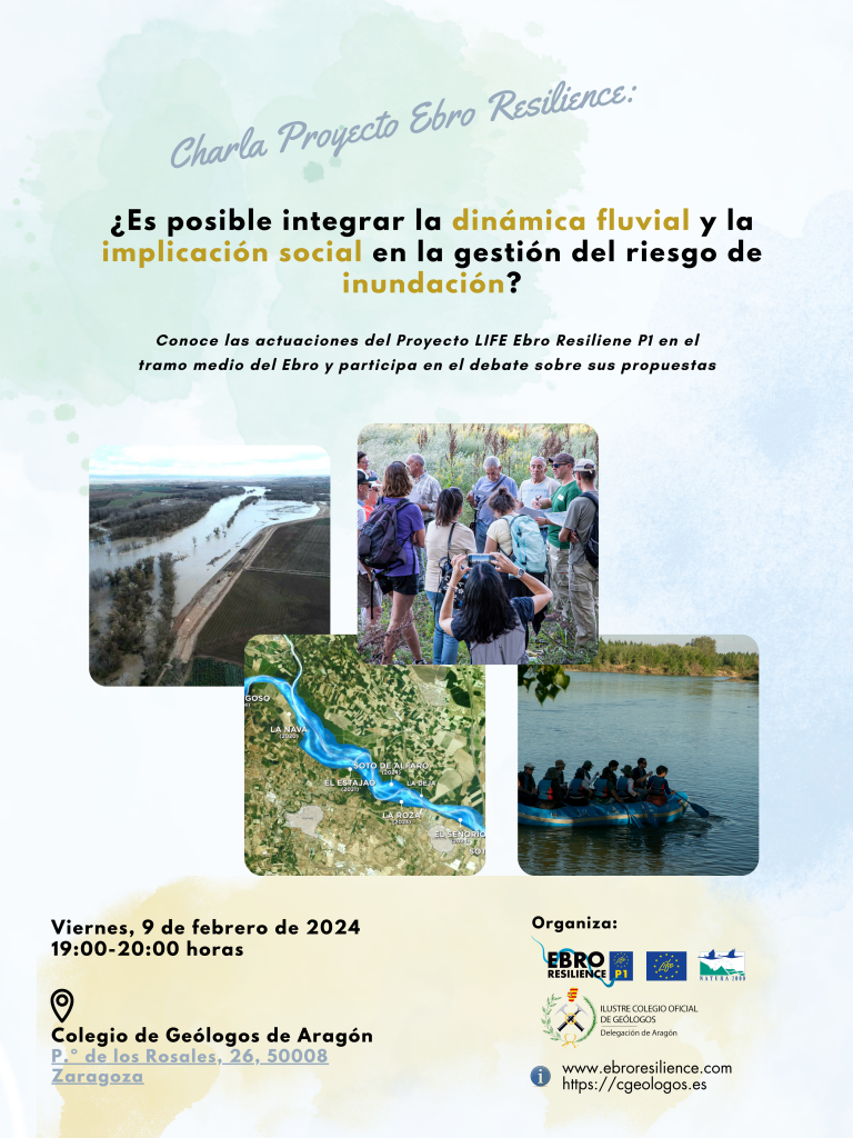 The LIFE Ebro Resilience P1 project and the Aragon Delegation of the Official Association of Geologists have organized an informative talk on Ebro Resilience actions and new visions in flood risk management. A space for exchange and analysis. ipaci