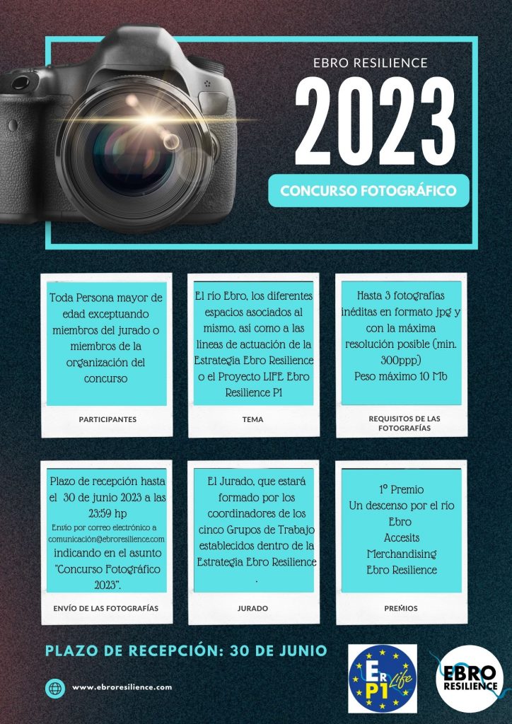 En esta ocasión, la temática del concurso está vinculada al río Ebro, los diferentes espacios asociados al mismo (paisajes fluviales, humedales, sotos, mejanas, etc), así como a las líneas de actuación de la Estrategia Ebro Resilience o el Proyecto LIFE Ebro Resilience P1, que se resumen en dos: gestión del riesgo de inundación y mejora de los ecosistemas fluviales (intervenciones de prevención, protección y preparación ante el riesgo de inundación, mejora de los ecosistemas fluviales, restauraciones, etc) incluyendo eventos de avenida o inundación.